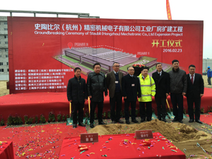 2月23日,我司承接設計的史陶比爾(杭州)精密機械電子有限公司舉行工業廠房擴建工程開工儀式,公司化工醫藥事業部副總經理魯俊受邀參加。會上,項目業主對工程建設提出要求及展望,同時對我司在設計工作上的配合給予高度肯定。