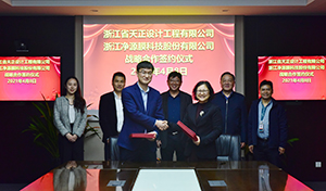 近日,浙江省天正設(shè)計工程有限公司與浙江凈源膜科技股份有限公司共同簽署戰(zhàn)略合作協(xié)議。雙方基于“優(yōu)勢互補、資源共享、合作共贏”的原則,就高強纖維復(fù)合PTFE膜產(chǎn)品在工程項目中的應(yīng)用達成一致。