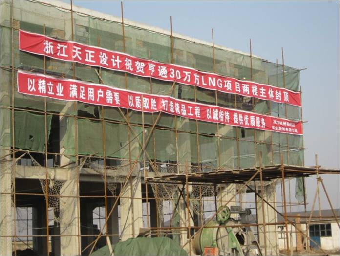 公司設計的亨通LNG項目主樓結頂