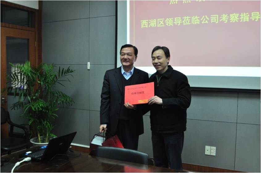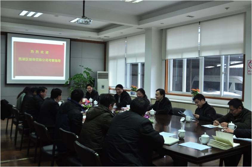 2011年2月17日,杭州市西湖區人大主任吳國良率區委、區人大、區政府有關部門領導一行八人蒞臨公司考察調研。公司有關領導和部門負責人參加了調研會。 調研會上,萬軍總經理就公司2010年總體情況以及2011年工作目標和重點、公司戰略發展目標等作了專題匯報。 吳主任聽取匯報后,高度評價了我公司在2010年所取得的成績以及對西湖區所作的貢獻,并表示要加強與企業的聯絡、優化服務,共同為西湖區的發展而努力。