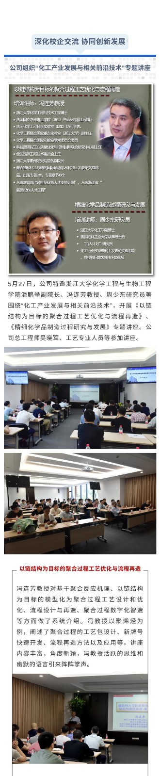 深化校企交流 協同創新發展——公司組織“化工產業發展與相關前沿技術”專題講座