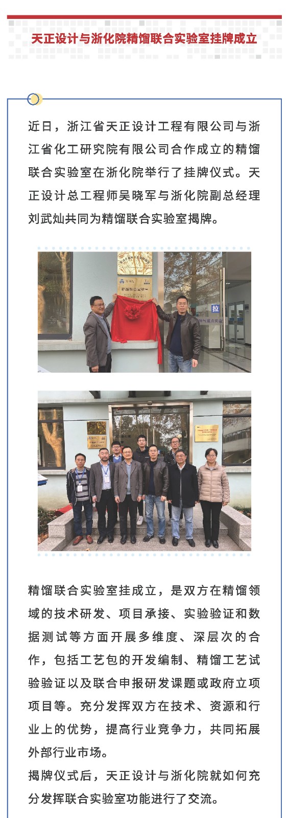天正設計與浙化院精餾聯合實驗室掛牌成立